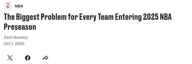 NBA新赛季正式来袭!在季前赛即将开打之际,美媒《bleacherreport》结合休赛期各支球队的调整晒出30队现有阵容最大短板,其中范乔丹重伤搅乱火箭队争冠计划。